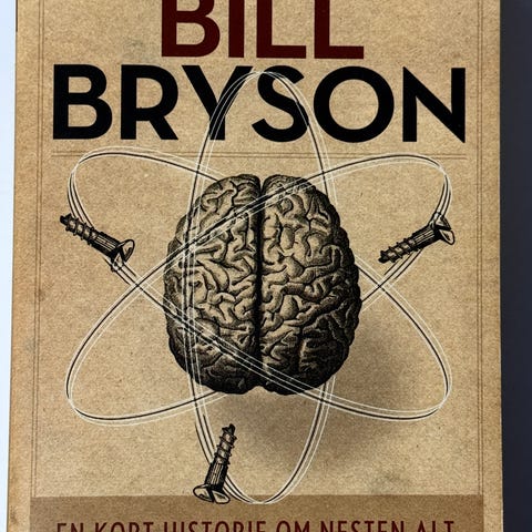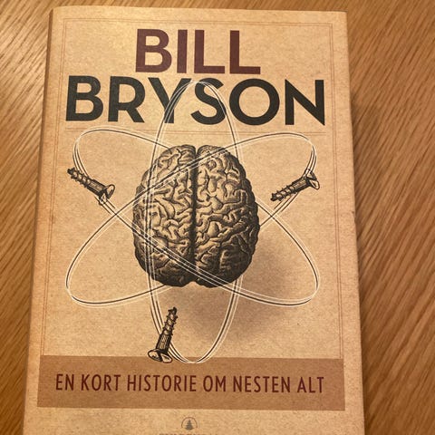 «Bill Bryson En kort historie om nesten alt er en bok som gir en populærvitenskapelig gjennomgang av ulike vitenskapelige temaer. Boken kombinerer fakta med historier og personlige anekdoter, og tar for seg emner innen naturvitenskap på en tilgjengelig måte for lesere uten spesialkunnskap.»
