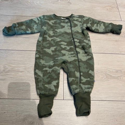 Ullfleece fra joha, kan brette over hender og føtter. Noen små hull/rifter men ingenting å si for bruken. God dress i bil, vogn eller under tykkere klær.