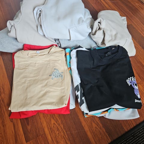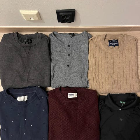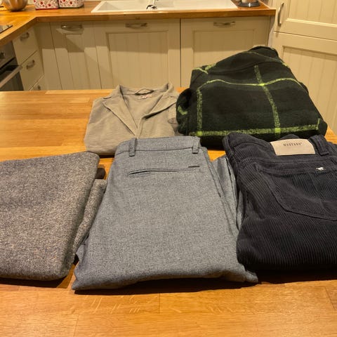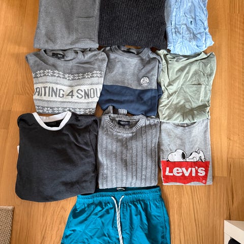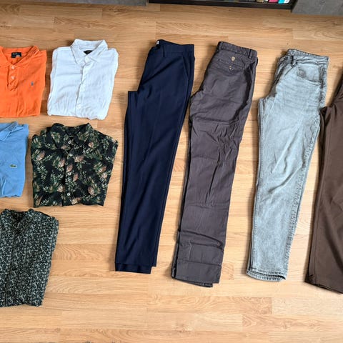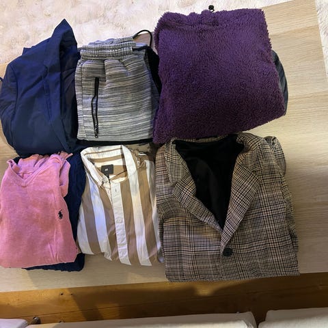 Selger en klespakke med 1 Gant bukse, 2 shortser fra Moods of Norway og Zara, 1 skjorte fra Samsøe & Samsøe, 3 gensere fra Jack & Jones, Only & Sons og Adidas. Selges kun samlet.