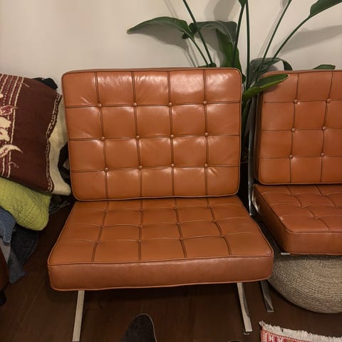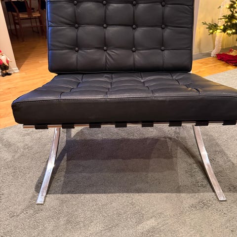 En fin kopi av Barcelona stolen designet av Ludwig Mies van der Rohe. Har to om det er ønsket. Må hentes