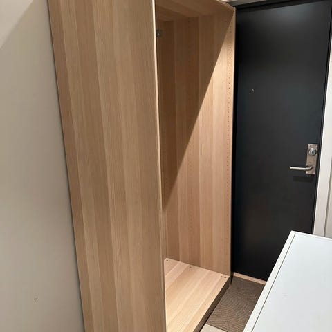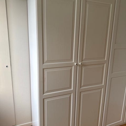 Veldig pent bruk garderobestamme med dører fra Ikea selges grunnet mangle på plass. Den kan demonteres. Må hentes.