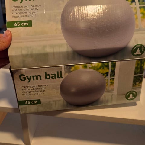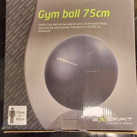 Training Exclusive Gymball med en diameter på 65 cm i grå farge. Inkluderer pumpe. Egnet for trening og rehabilitering.
