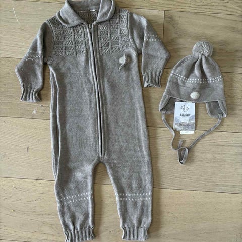 Lillelam dress str 80 med knytelue str 48-50 selges kr 500.