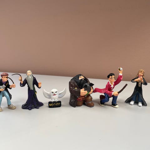 Harry Potter Magical capsules serie 1. Kapselen inkluderer 3 luker, i luke 1 er et hogwarts emblem hvor man skal holde fingeren for at fargen til karakterens hus avsløres, luke 2 har en strips som dyppes i vann for å avsløre et hint om hvem karakteren er. I luke 3 er karakteren Harry Potter, en koffert, et hogwarts brev og uglen Hedwig (staven mangler).