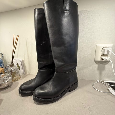 Helt nye og ubrukte, kule knehøye boots / støvletter i skinn str 39. Fra H&M.