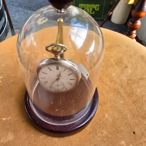 Original messing urskive og pendel, hel glassdør og pene utskjæringer.