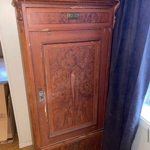 Antikk hjørneskap og kommode i tre