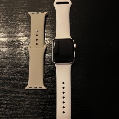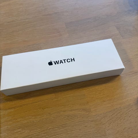 Selger min Apple Watch SE 3 44mm i fargen Midnatt med mørk blå Sport Loop.