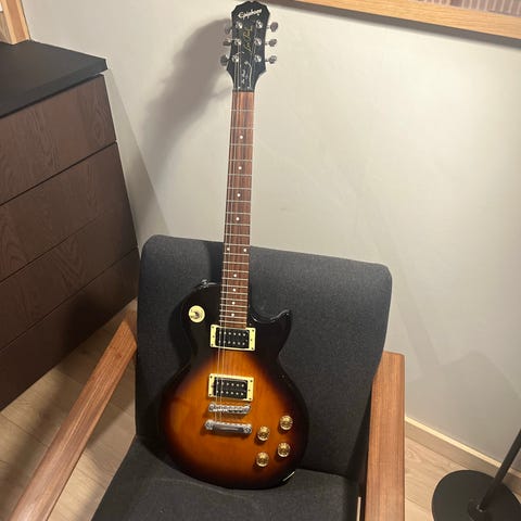 Epiphone Les Paul elektrisk gitar i svart farge. Gitaren har solid kropp og klassisk Les Paul design.