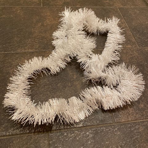 Juletre i plast gis bort mot henting.