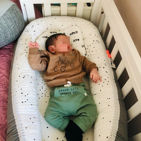 Babynestet er mykt og behagelig, praktisk å ha med seg rundt i huset eller på besøk.