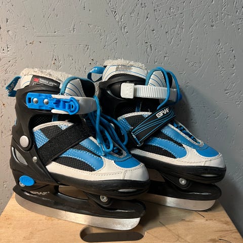 Pent brukte skøyter fra Graf som barnet kan bruke lengere takket være justeringer på rammen fra str 27 til 30
