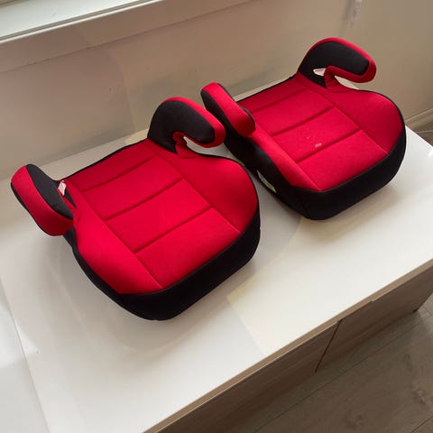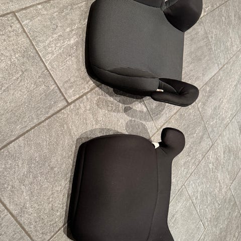 Selger to bilputer, nyvaskete trekk. Ene med grått trekk er fra 15-36kg. Den andre pute med svart trekk er høyere og kan brukes fra 125-150cm. Ingen vektbegrensning. Ubetydelige brukt begge to.