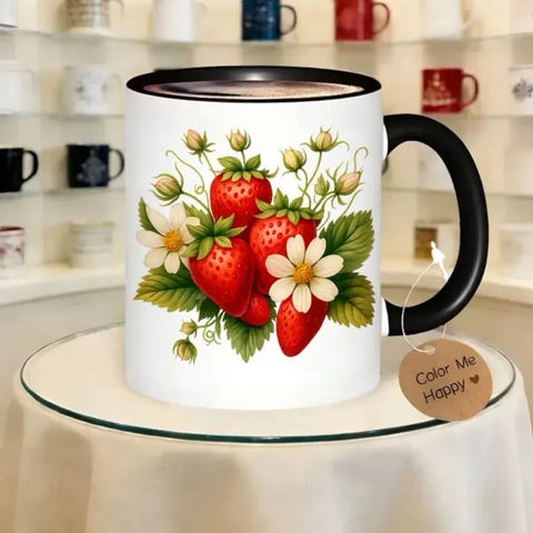 Jordbær & Blomst Keramikkrus - Mikrobølgeovnsikkert Kaffekopp med Røde Bærer, Hvite blomster og Grønne blade, Vaskes kun for hånd, Elegant Gave til kvinner/menn, Valentinsdag, Jul, Fars dag, bursdager, Holdbar Daglig Brukskrus, Kaffekopp, Morsomme Kaffekopper, Kopper, Lærerkrus, Kaffekopper, Kaffekopp, Søt Kopp.