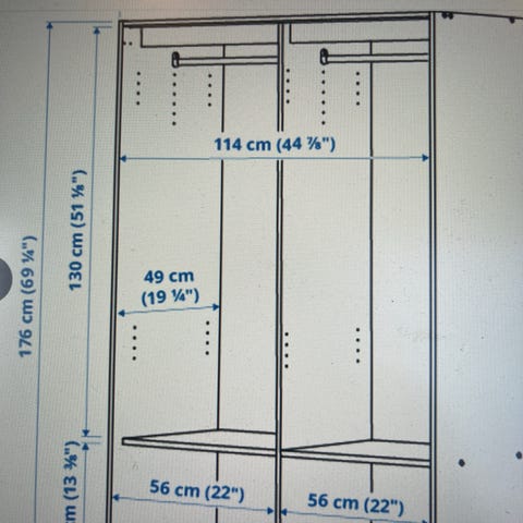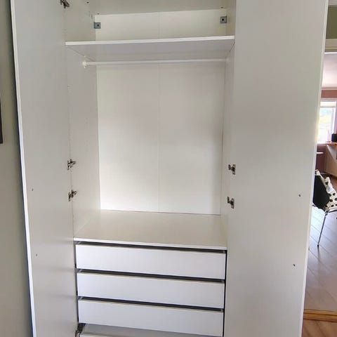Ikea Platsa Garderobe m 2 dører+3 skuffer, hvit/Fonnes hvit, 80x42x221 cm