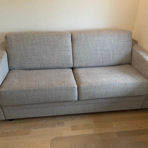 Hovden sovesofa med 140 cm pocketmadrass. Grei å ligge på som gjesteseng.