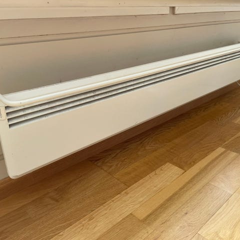 Fulgte med huskjøp, men ikke brukt av oss. Har kun testet den i 5-10 min og da ble den varm som normalt. Tatt ned nå ifm. oppussing og vi skal ikke ha den videre.