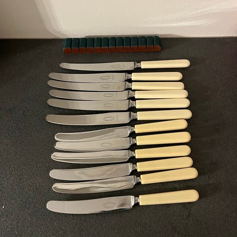 Nye ikke brukt .Gaflene er 21cm lang og knivene 22,5cm.