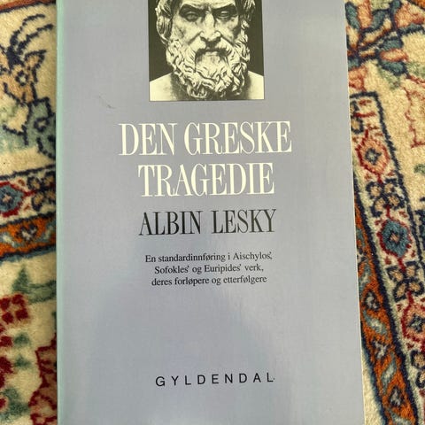 Albin Lesky Den greske tragedie bok. En monografi som omhandler Aiskylos, Sofokles og Euripides' verk, deres forfatterskap og utviklingen av gresk tragedie. Utgitt av Gyldendal.