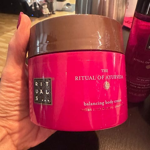 Rituals The Ritual of Ayurveda gave- og kroppspleiesett med flere produkter for hud- og kroppspleie. Settet inneholder ulike pleieprodukter i forskjellige emballasjer, inkludert krem, spray og gel, med fokus på velvære og hudpleie. NB! Mangler lys og gaveeske,