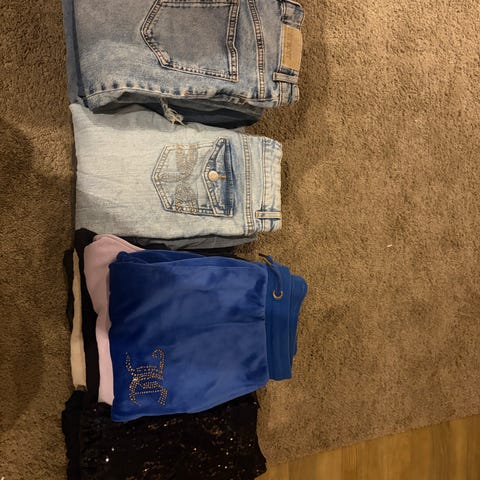 Gina Tricot Denimbukse for jente i størrelse 134. Buksen er grå og laget av denimmateriale.
