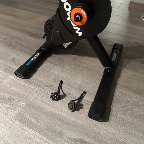 Wahoo KICKR sykkelrulle selges. Designet for innendørs sykling og trening. Utstyrt med zwift cog og zwift play controllere. Dette lar deg bruke digital giring i Zwift. Inkluderer strømforsyning og tilkoblingsutstyr for quick realese aksling.