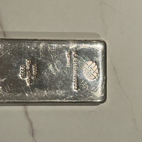 10 Oz (310 gram) anerkjent Krigssølv fra Konvoi SL64 som ble hentet ut av Britene . Sølvet er 99.9% rent og kommer med boks.