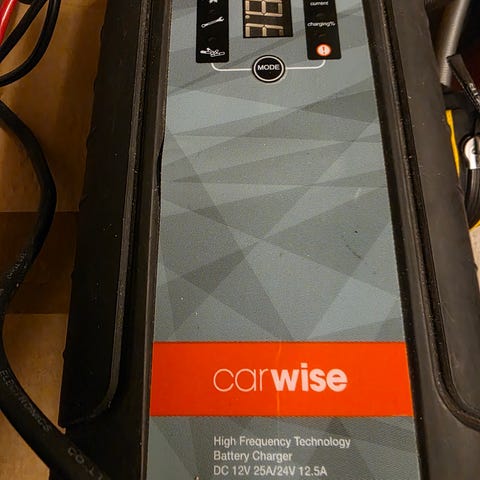 Carwise Batterilader med 6/12V utgang og 8A ladeeffekt. Leveres med kabler og koblinger for tilkobling til bilbatteri. Pris ny 1249,-