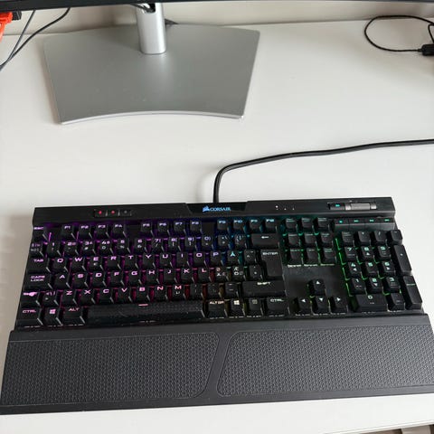 Pent brukt mekanisk tastatur av typen Corsair K70 MK.2 RGB. Jeg har rengjort tastaturet og alt fungerer som det skal.