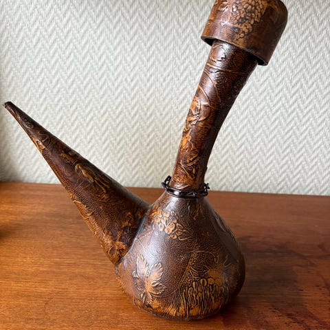 Dette er en collector’s item ølkaraffel av typen Neuschwansteiner med hengslet lokk.