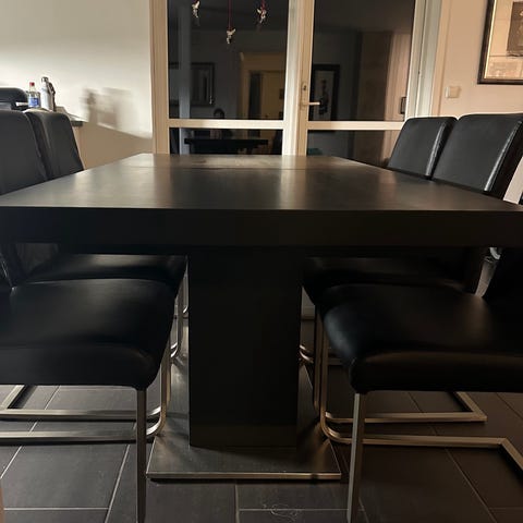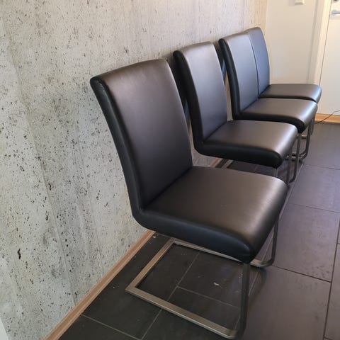 4 spisebord stoler i grått stoff selges, de er pent brukt uten flekker.
