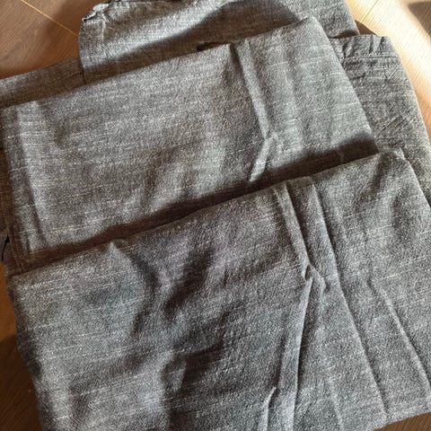 For flere år siden kjøpte jeg gml duk på en nettside, pga nydelig grønnfarge. Det viste seg å være div hull og flekker på duken. Men fargen var så flott. Sydde om til en gardinkappe 128 x 39,5 cm med stoff bak til å tre den på en stang. Og så ble det sydd et pyntehåndkle, 75 cm x 45 cm pluss ca 12 cm på bakside til å henge opp på en slik pyntehåndklehylle. Så har det bare blitt liggende i ei kiste her. Men nå må jeg få unna slikt jeg ikke bruker. Er det noen som trenger no slikt på ei hytte eller lignende? Kan sende i konvolutt så porto kr 58 kommer i tillegg .