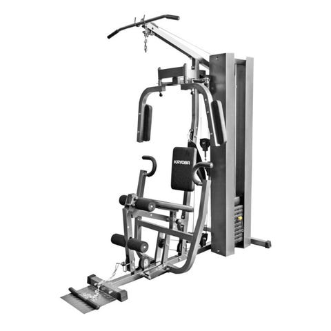 Epsilon Multigym treningsapparat med flere funksjoner for styrketrening. Inkluderer justerbar ben- og armpress, benk for sit-ups og vektmagasin for motstand. Designet for hjemmebruk og allsidig trening.