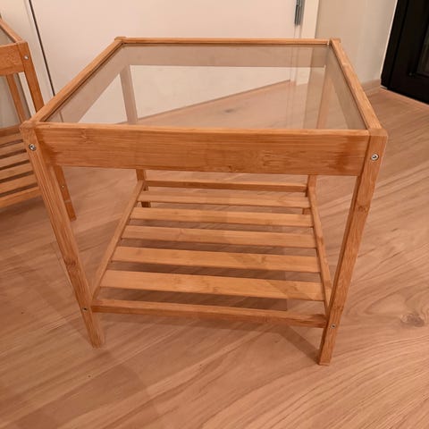 Hyllen er i solid tre, ikke finér. Den er dekorativ og stilren, og passer mange steder i huset – ser for eksempel veldig bra ut med potteplanter. Kjøpt på Skeidar i 2020 for kr 3 999. Meget god stand, ingen synlige bruksmerker eller skrammer. Må hentes.