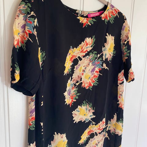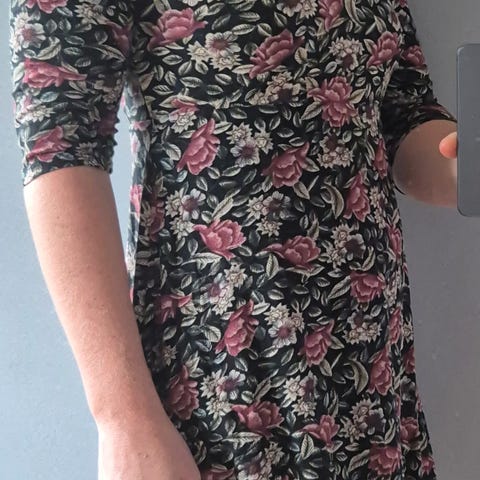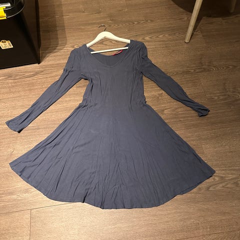Nydelig og behagelig kjole i flanell. Kjolen har et rutemønster i grått, stropper og lilla knapper. Litt stor i str, kan fint passe liten m.