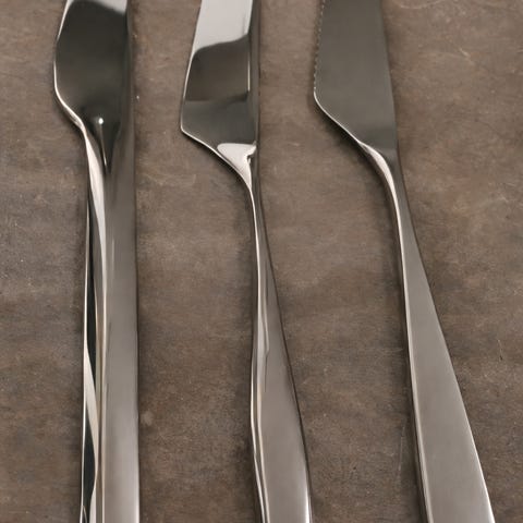 Hardanger Bestikk bestikksett i rustfritt stål bestående av kniver, gafler og skjeer. Ubrukt, men har kun eske til teskjeer.