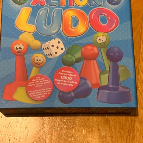 Ludo spill med brett og brikker i flere farger. Spillet passer for 2-4 spillere og egner seg for familie- og sosiale spillkvelder.