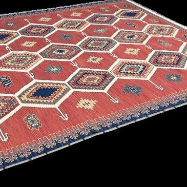 Vakkert håndvevet kilim i 100% ull fra ca 1940-1960