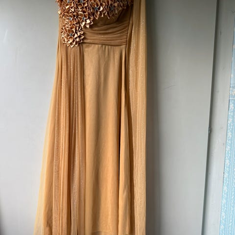 Svart kjole med fine detaljer i grå farge. Stoff som ikke krøller, henger fint og behagelig å ha på. Denne er en klassiker og fin til flere anledninger . Laget av 70% polyester og 30% wool. Pent brukt