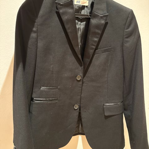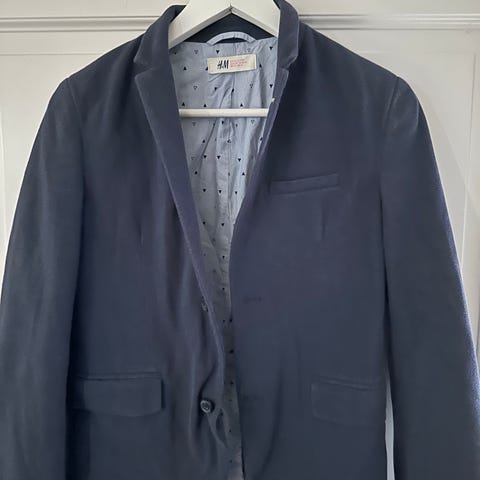 H&M blå Blazer i bomull for gutt, størrelse 146. Jack&Jones blå bukse størrelse 152. Pent brukt. Nyvasket og klart for bruk. Størrelsen på jakke og bukse matcher bra sammen.