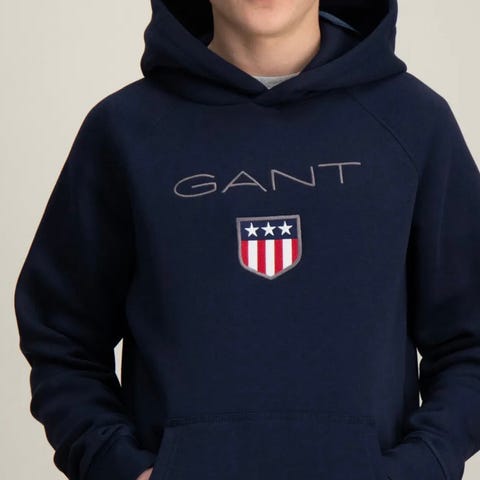GANT hettegenser i grønn farge, størrelse S for herre. Laget av bomullsmateriale. Genseren har hette med snøring og frontlomme. Passer til hverdagsbruk.