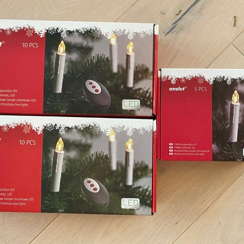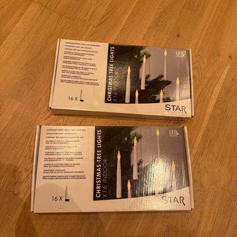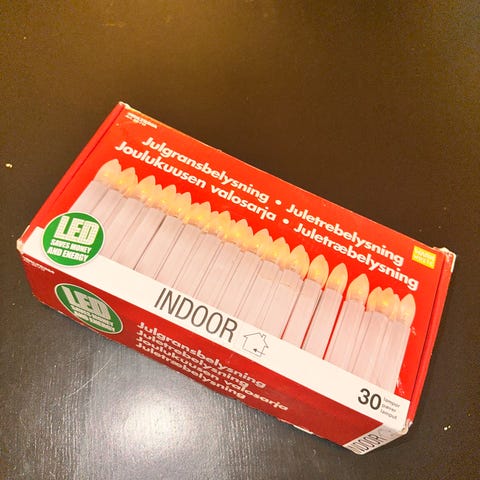 Juletrelys med batterier og kontroll. 20 stk. (batterier medfølger ikke).