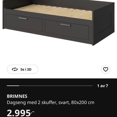 Brimnes dagseng uttrekkbar med to skuffer. Med madrass