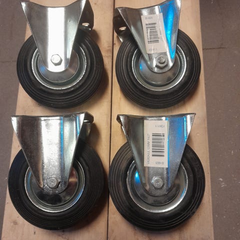 Helt ny sett pakke, ubrukt leddhjul Ø 75mm, svingbart, bremse på 2 hjulene.