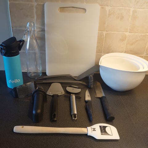 Kan vaskes i oppvaskmaskin, men mandolinskyveren må spyles for hånd for å forhindre vannansamling i hulrom.