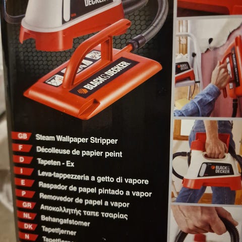 Kun brukt til å fjerne tapet på én vegg. Selger den fordi den ikke trengs lenger. Kjøpt på Obs BYGG.