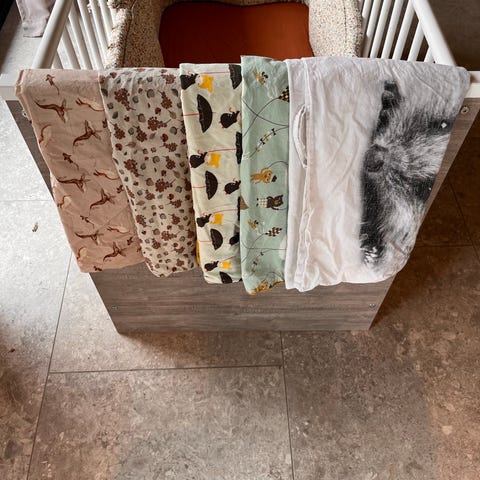 Selger samlet 3 sett med sengeklær (65x80) for babydyne + ett laken (passer til f.eks. vogn eller liten babyseng/krybbe). Alt er pent brukt og kan vaskes på 60 grader. 2 sengesett i bomull og 1 sengesett i myk flanell. Fra røyk-og dyrefritt hjem