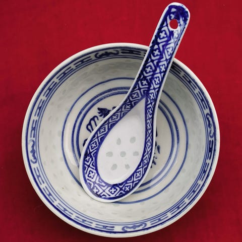 Kinesisk porselen ramen bolle med riskorn. De er nye ikke brukt. Størrelse er 6 tommer, høyde 7cm og diameter 15cm, skje lengde er 13,5cm. Pris er 90kr for bolle, 40kr for skjeen. Kan kjøpe separert. Lagerstatus er 100 stk.