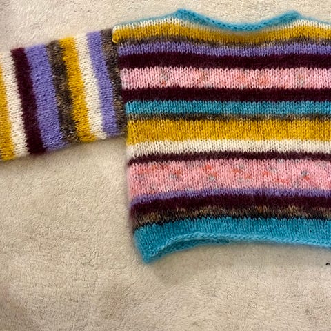 Ulltøy: 2 stk strikkede gensere i regnbuefarger og bukse str 4-6 år