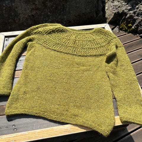 Strikket i alpakka. Oversize str M/L spørs hvordan du vil ha den